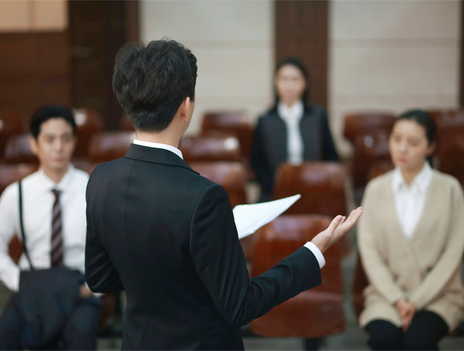 검사의 주장에 대응하는 변론을 합니다.